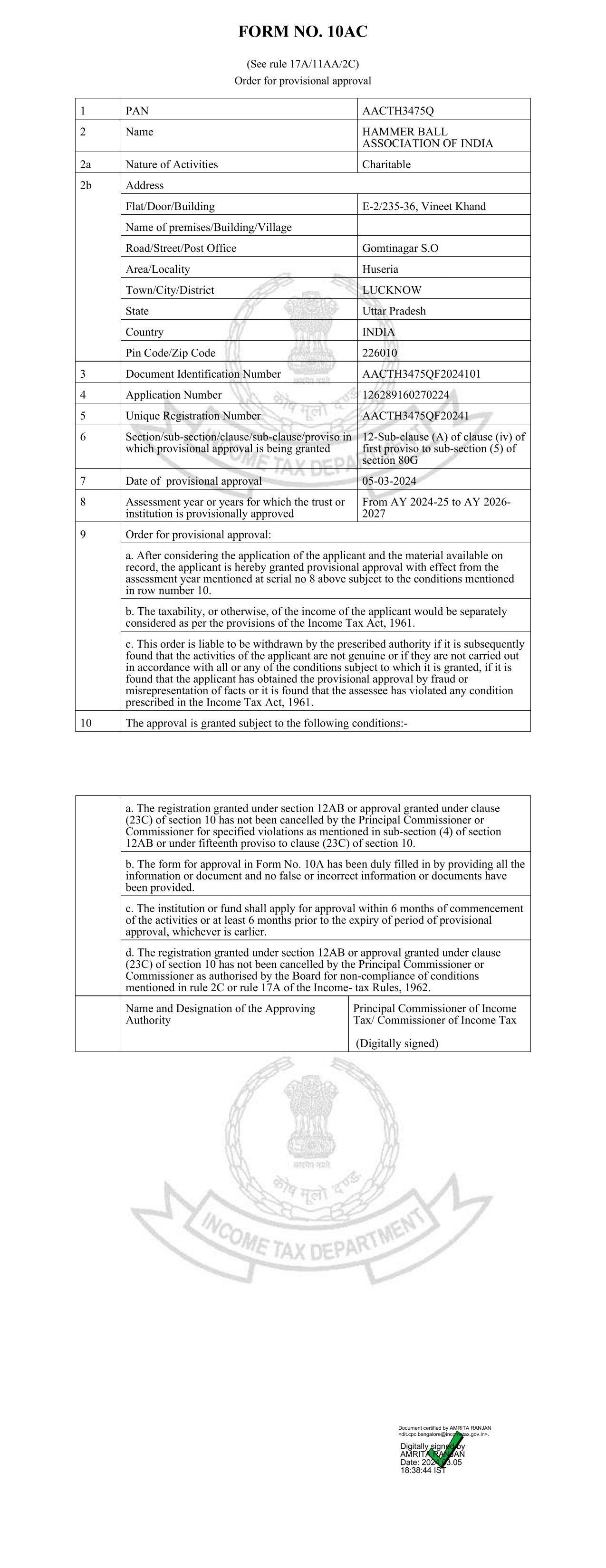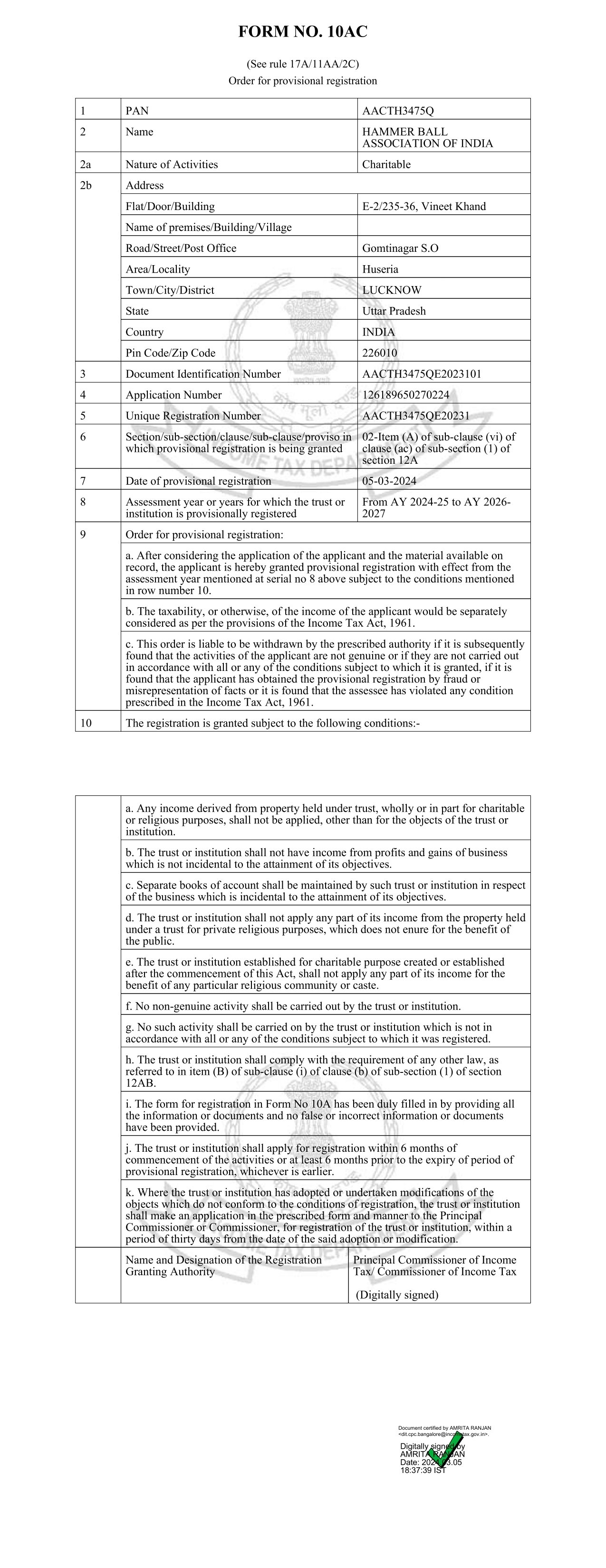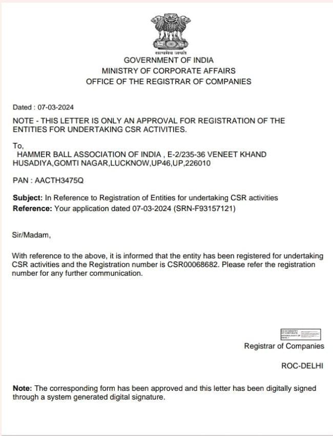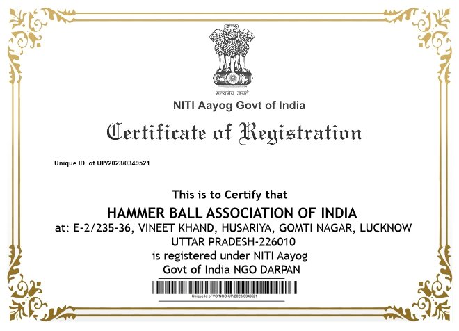 Certificate of Registration of HBAI Niti Aayog Govt. of India
